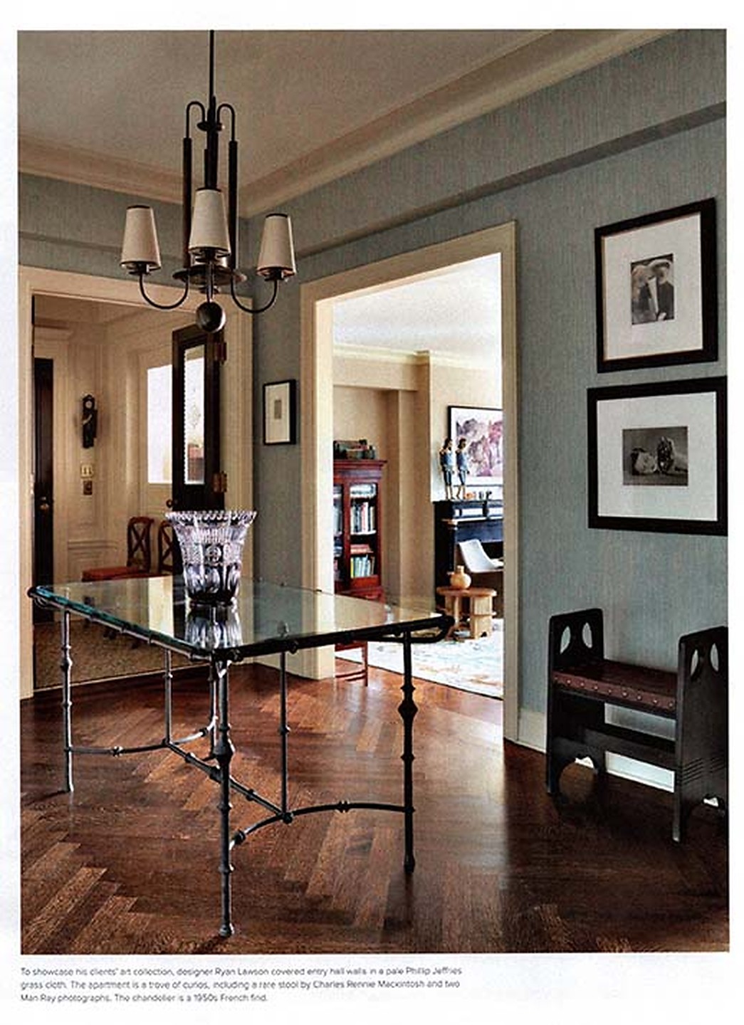 In the article "One For The Books" interior designer Ryan Lawson featured Zebra Grass 3306 Oolong Blue Tea in the entry hall of a clients home.