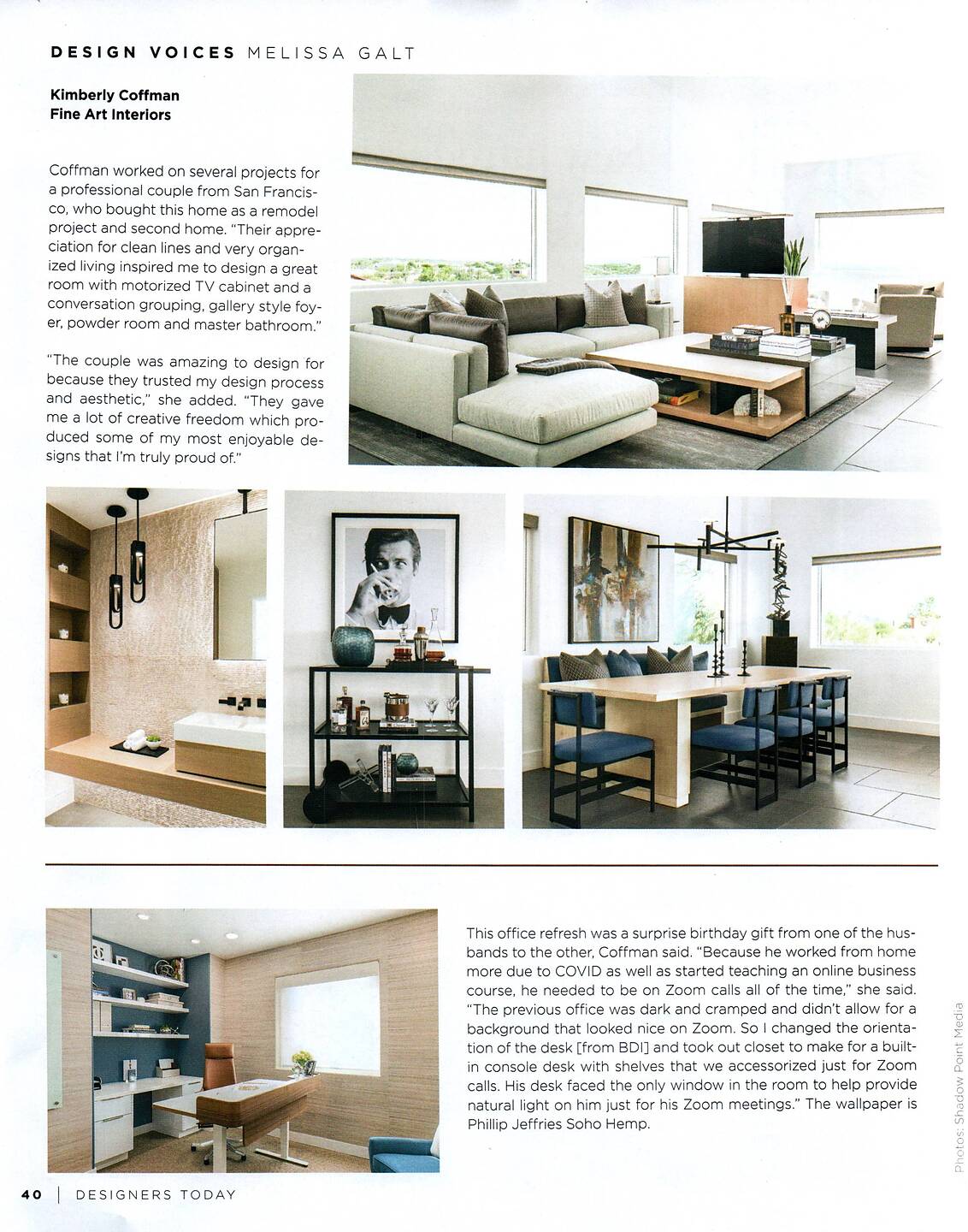 In the article "Design in Action" interior designer Kimberly Coffman features Soho Hemp 9398 DownTown Greige in the office of a clients home.