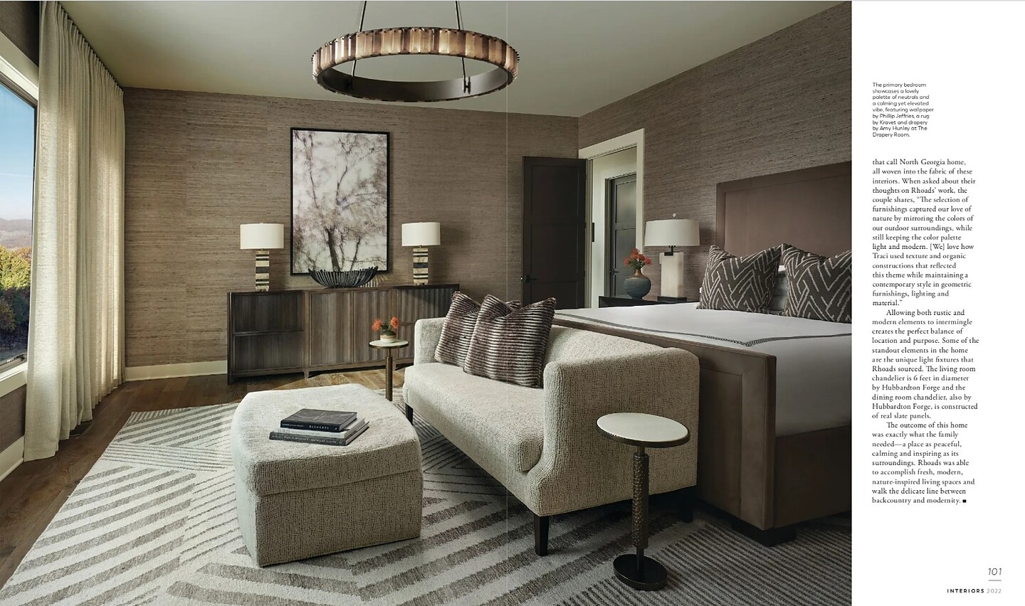 In the article "Mountain Majesty" interior designer Traci Rhoads featured Extra Fine Arrowroot 3569 Elephant in the master, and Sculpted Wood 2811 Parisian Pale in the master bathroom of a clients home.