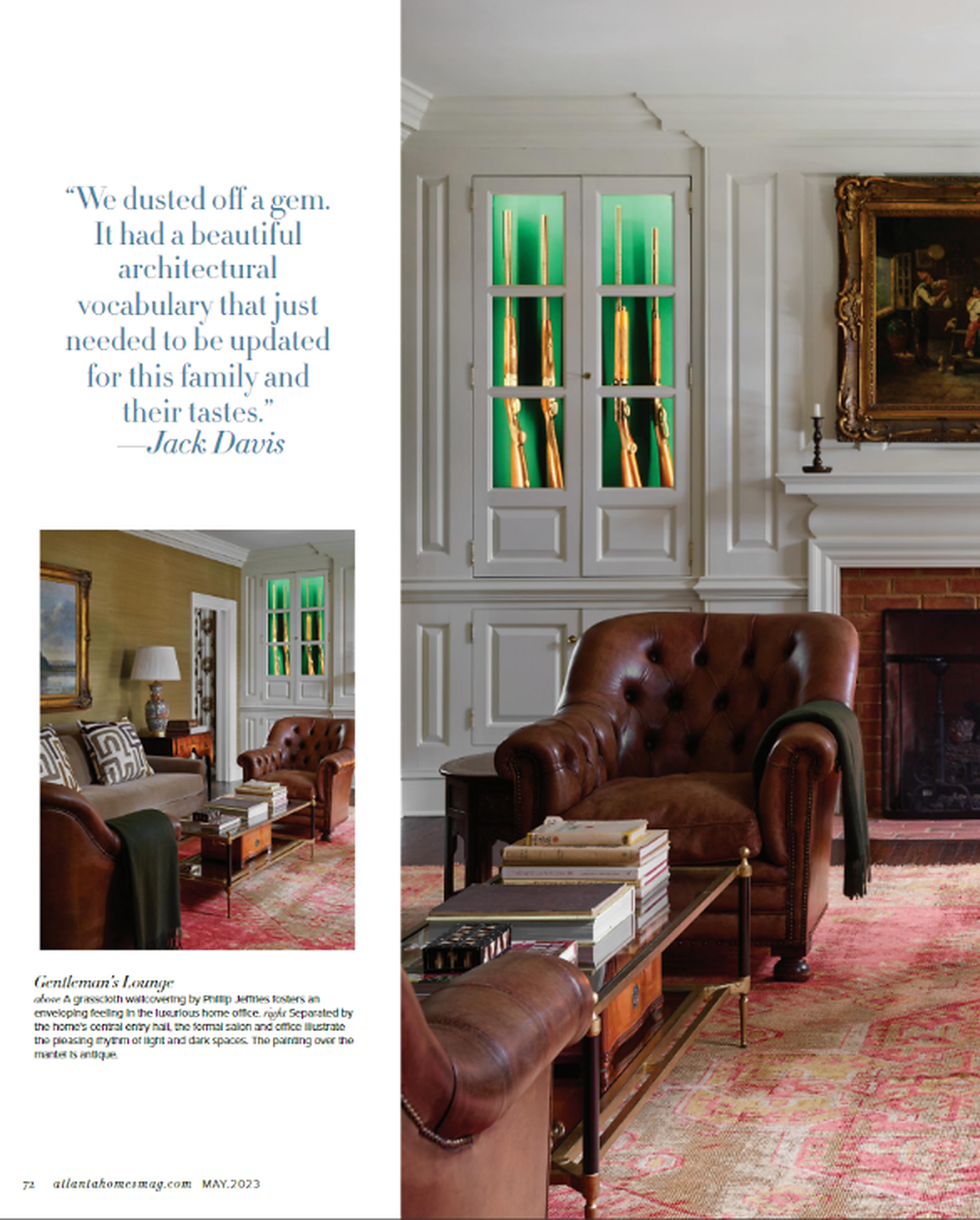 In article, "Fresh Take," interior designer Sara Alias Interiors featured Juicy Jute 1978 Bleach in the Gentlemen's room of her home.