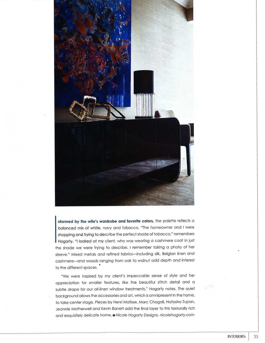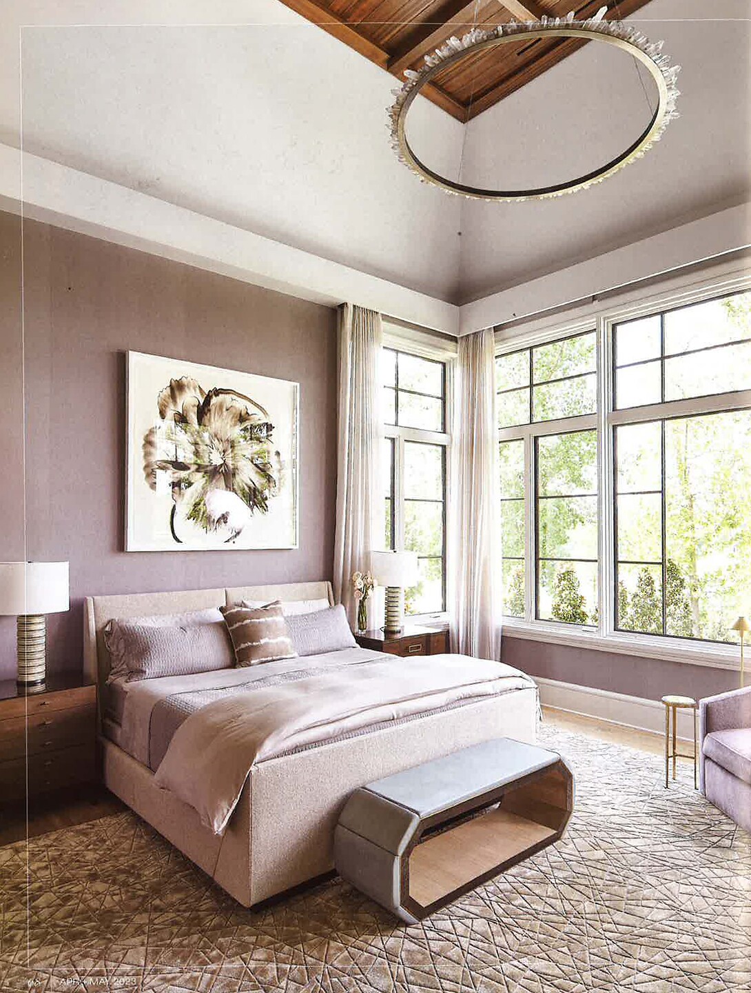 In article, "Delicate Balance," interior designer Layton Campbell featured Sateen and Sateen Shimmer 4944 Chill in the bedroom of a client's home.