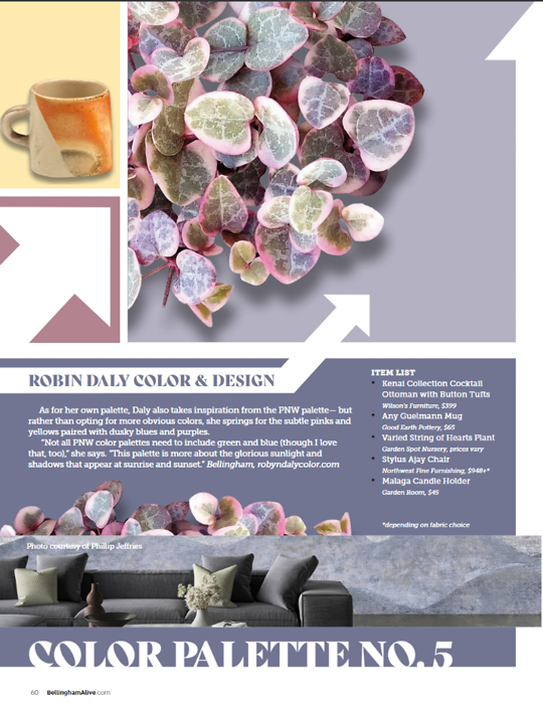 In article, "Color Palette No.5," interior designer Robin Daly featured Beyond among a PNW inspired color palette.